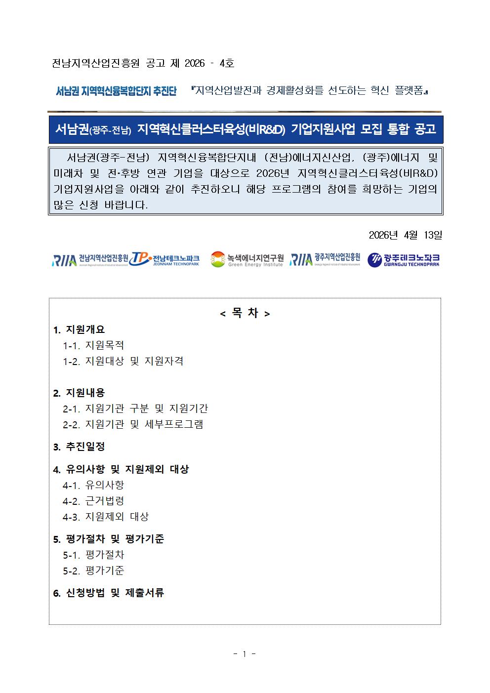 1. 2026년 서남권 지역혁신클러스터육성(비R&D) 기업지원사업 모집 통합 공고_서남권추진단_공고용.pdf
