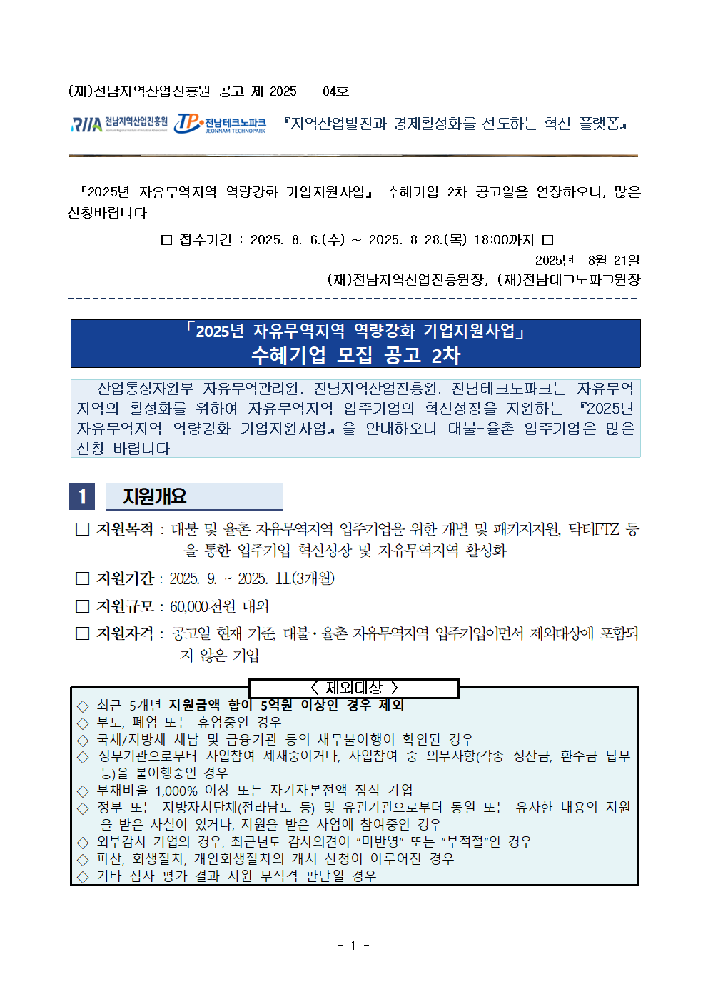 1. 공고문_「2025년 자유무역지역 역량강화 기업지원사업수혜기업 모집 2차 공고일 연장_~8.28..hwp