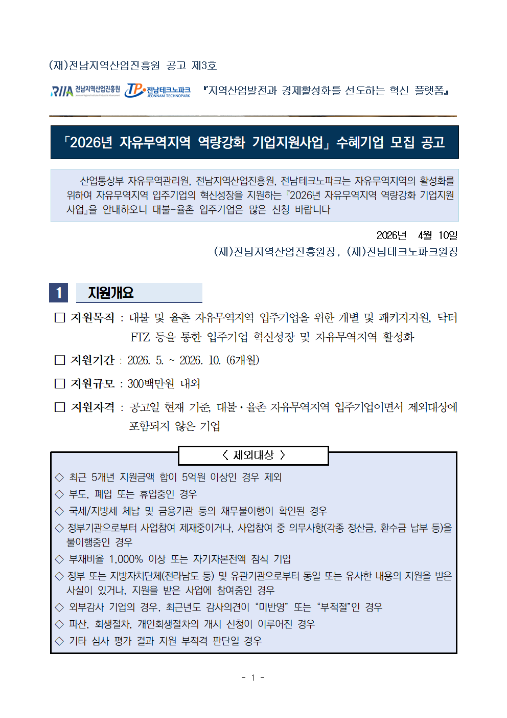 2026년 자유무역지역 역량강화 기업지원사업 수혜기업 모집 공고
