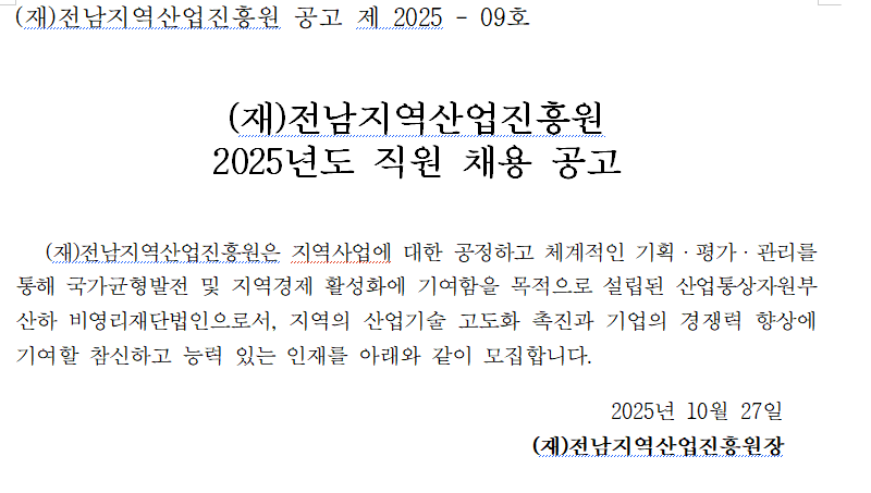(재)전남지역산업진흥원 2025년도 직원 채용 공고